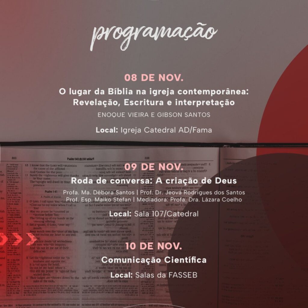 Em relação à Escritura, os problemas pertinentes à questão da objetividade, das proposições e da verdade, além da atribuição de sentido, da ressignificação e mesmo do elemento ideológico se mostram desafiadores à igreja contemporânea. Pensando nisso, a FASSEB resolveu não se esquivar de tais desafios, mas procurar no âmbito de sua confessionalidade e comunidade acadêmica, discutir tudo isso nesse grande Congresso que tem, ao longo dos anos, logrado êxito contribuindo com à formação acadêmica de seus alunos, além de oportunizar a participação de seus egressos, público externo e comunidades de fé.